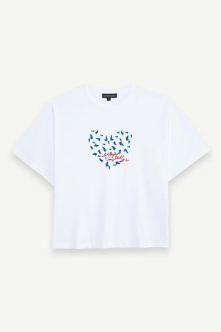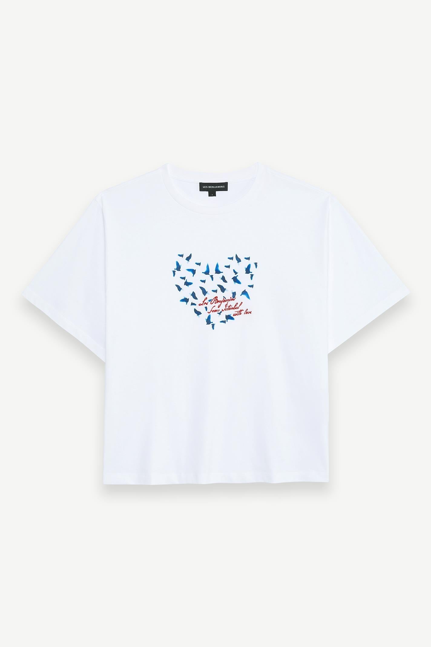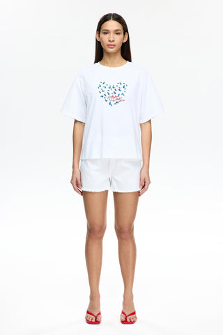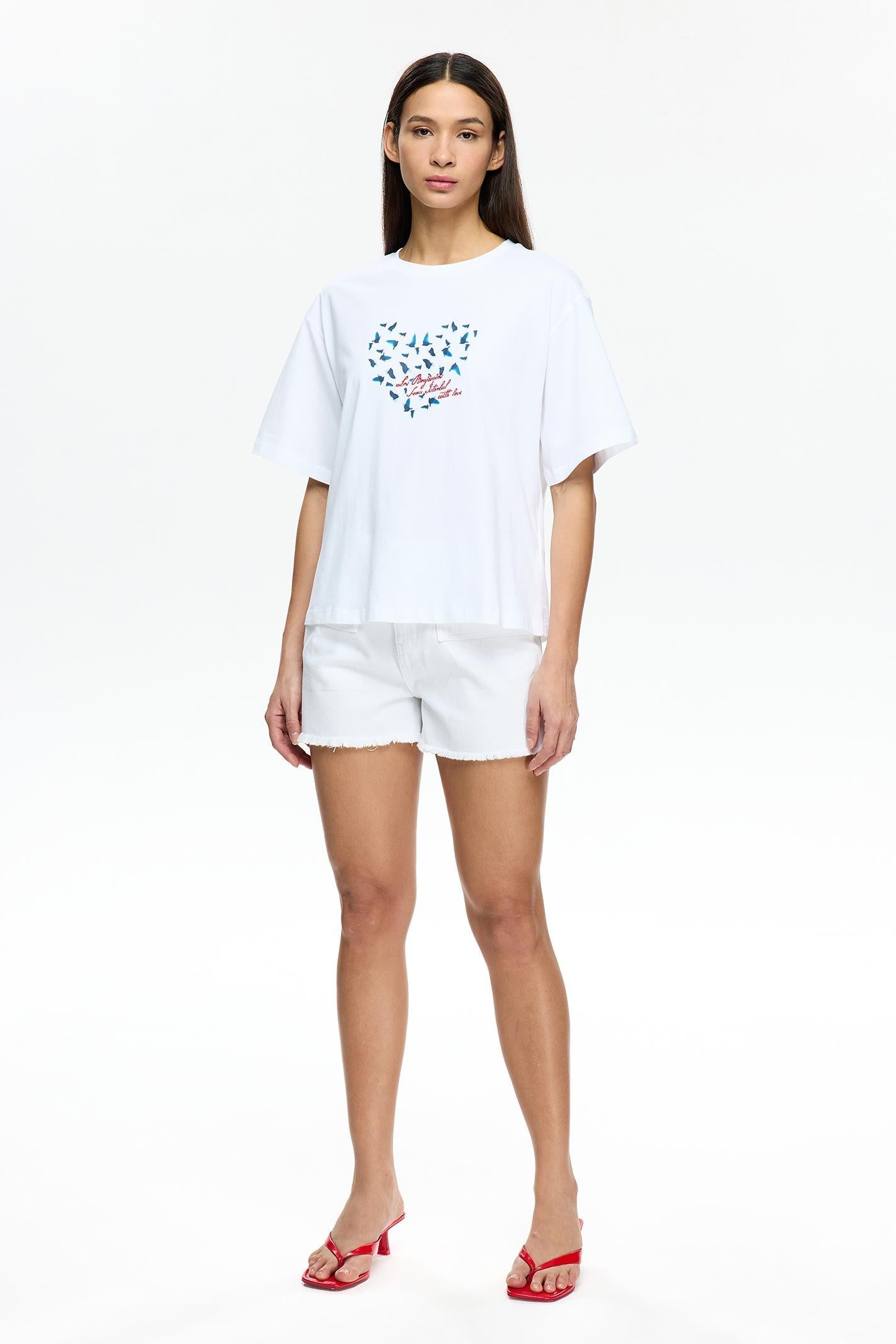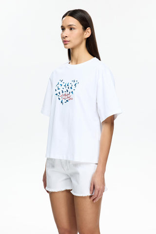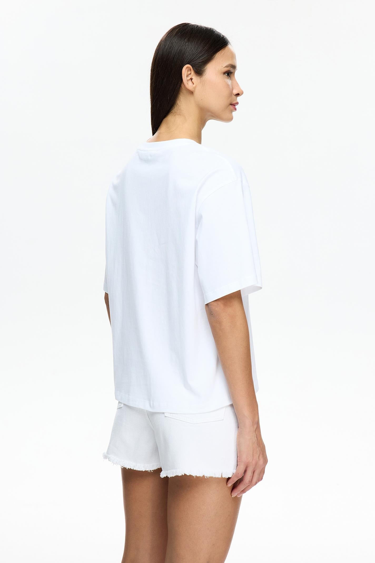 •Boxed fit tee •Seasonal digital + embroidery branding