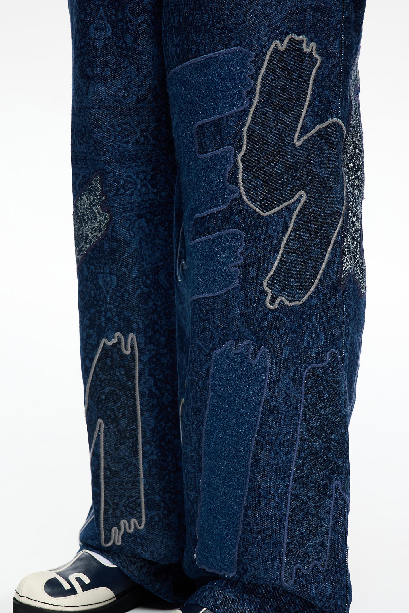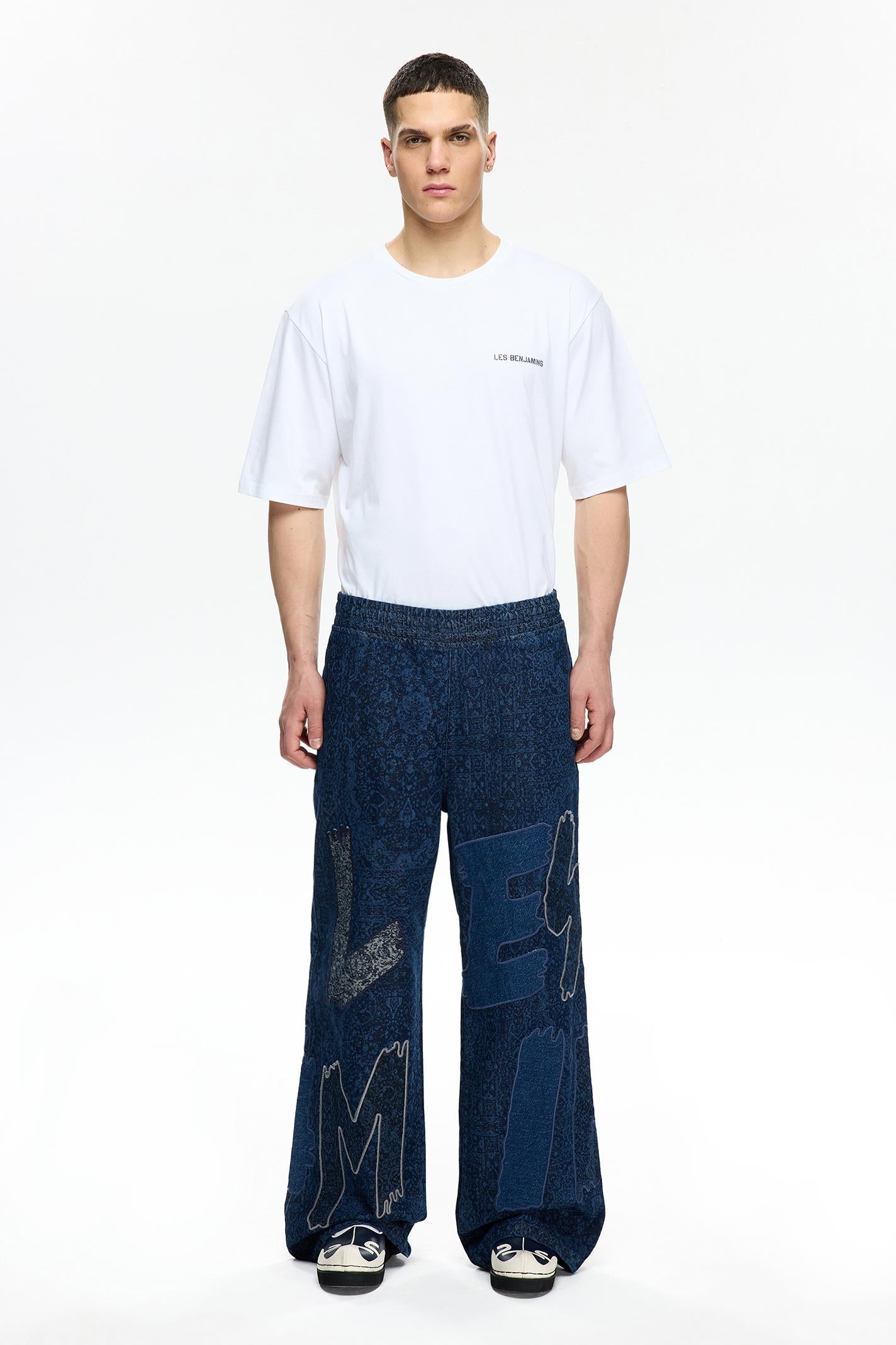 •Elasticated waist •Fillet pocket on the edges •Laser print carpet allover •Appliqué patch branding