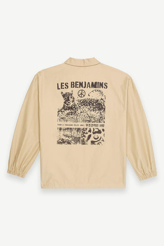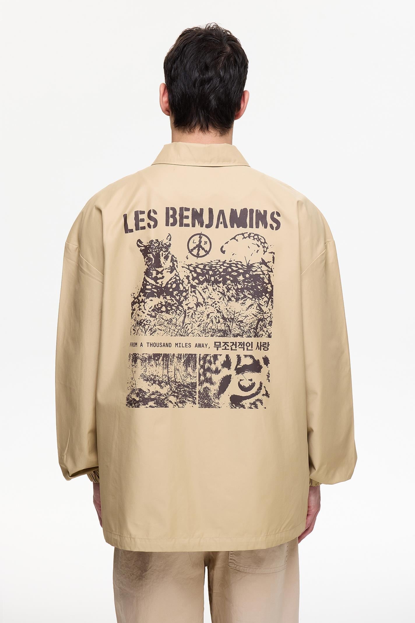•Jacket silhouette features •There is a tunnel at the hem •Water-based print branding at the front •Seasonal water-based printing branding at the back •Digital carpet allover