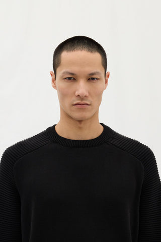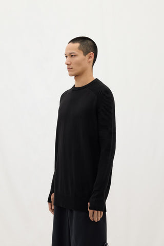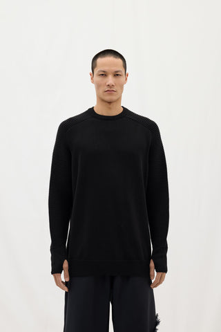 Rib-patterned,rib cuff and crew neck knit combined with balaclava