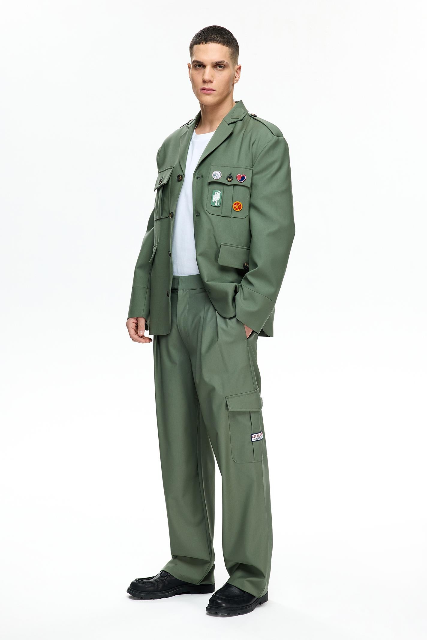 •Trouser features •Battery available •Concealed pocket •Fillet pocket at the back •Knee-length gusseted pocket •Ornamental woven label on the front