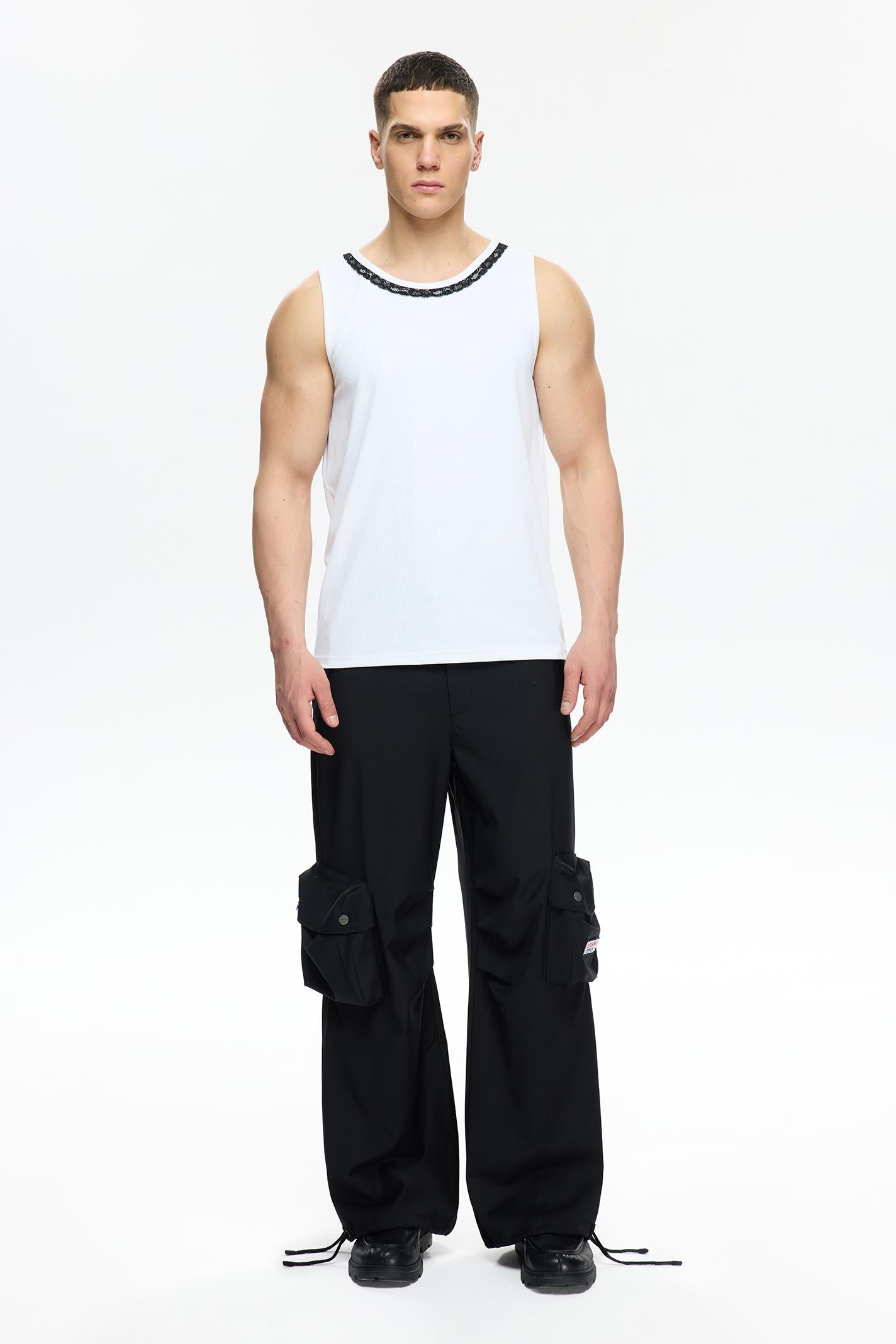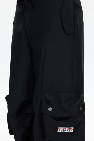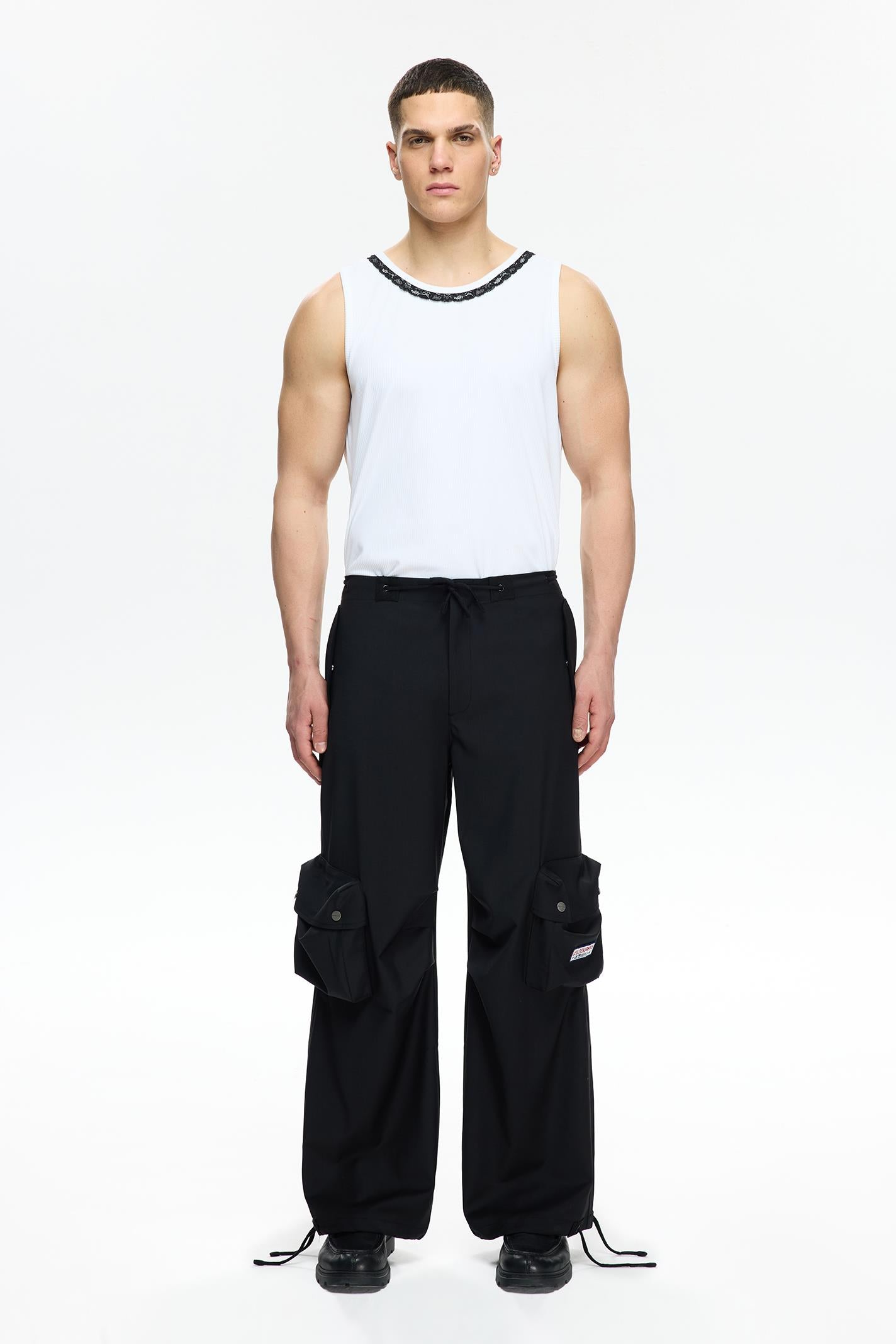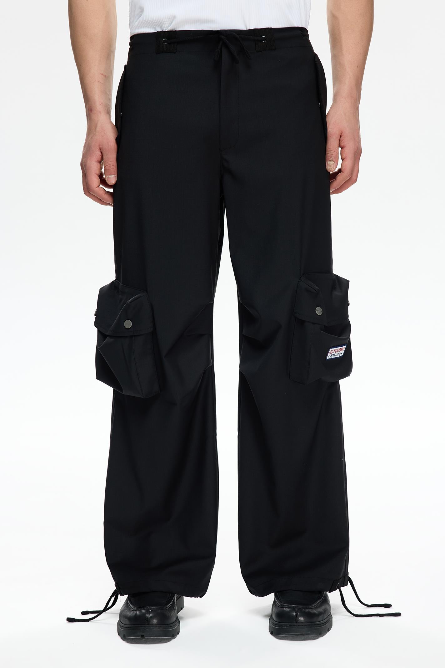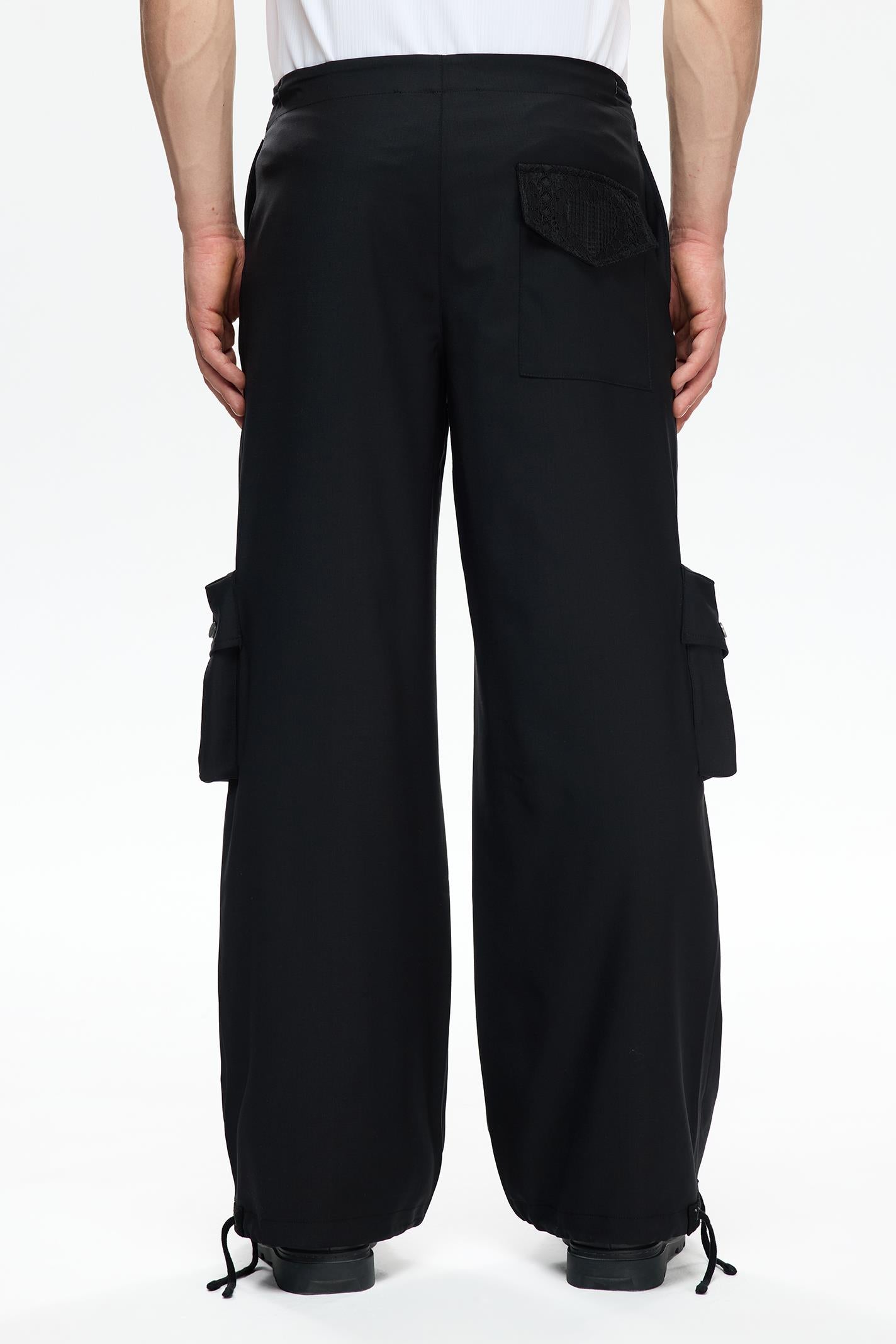 •Trouser features •Gusseted pockets at the front •Elasticated waist and leg •Carpet in the back pocket •Front pocket