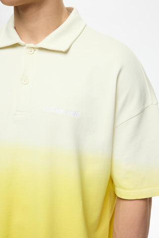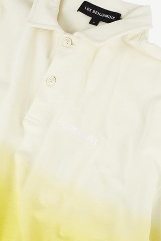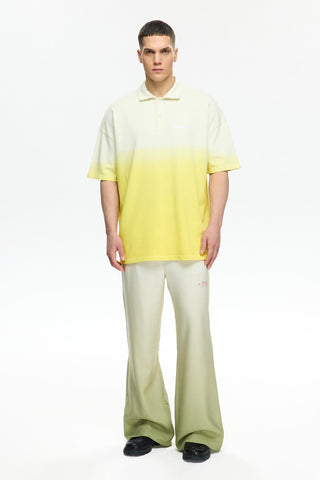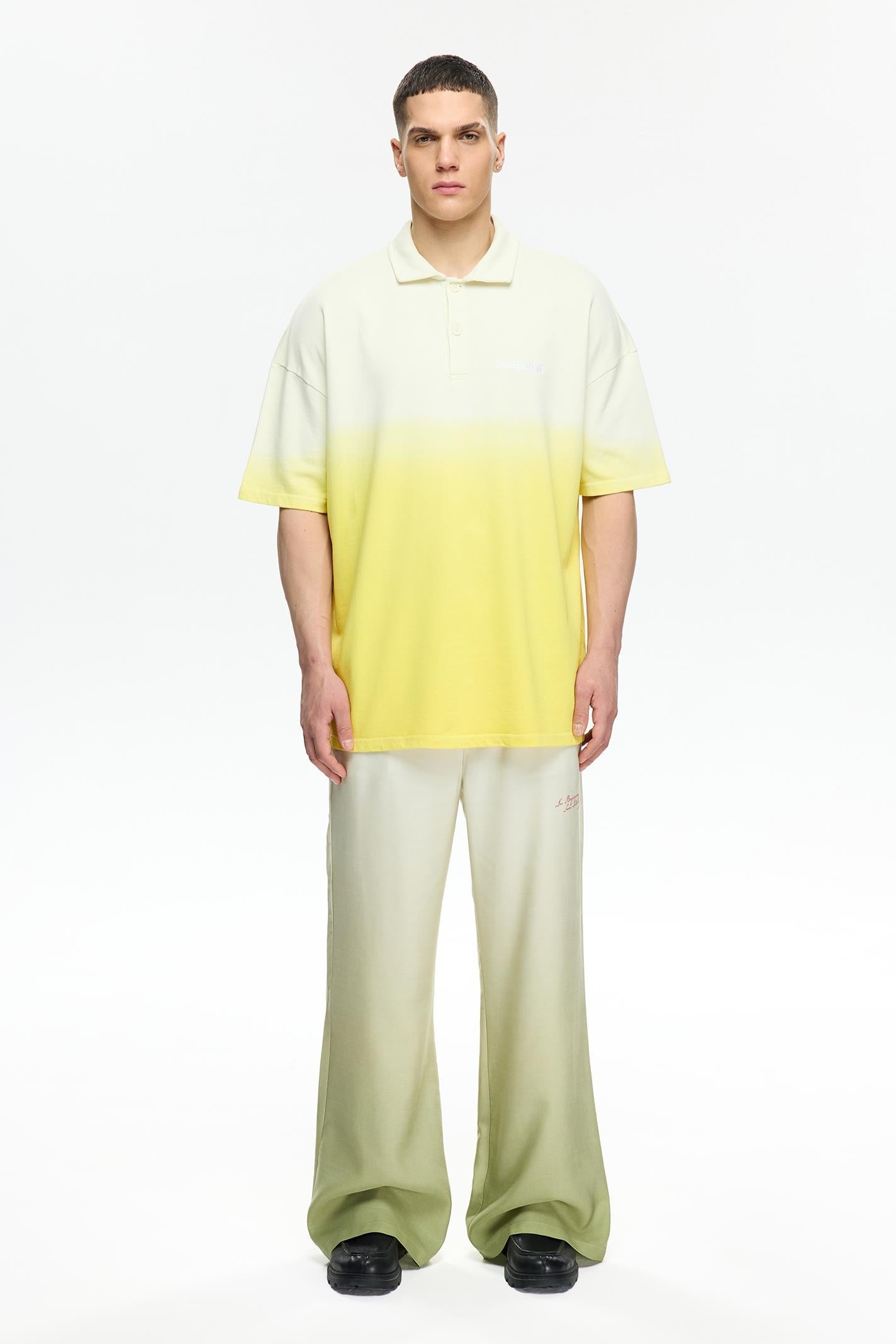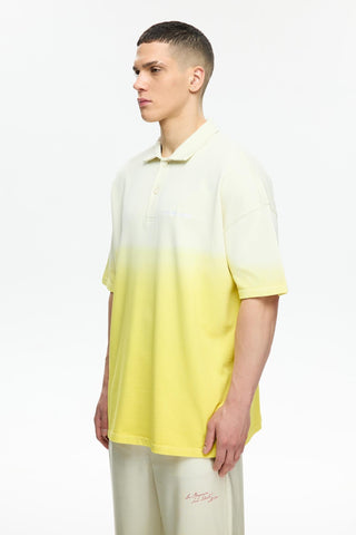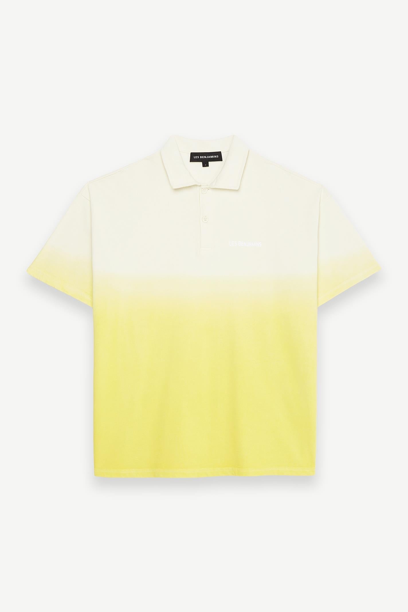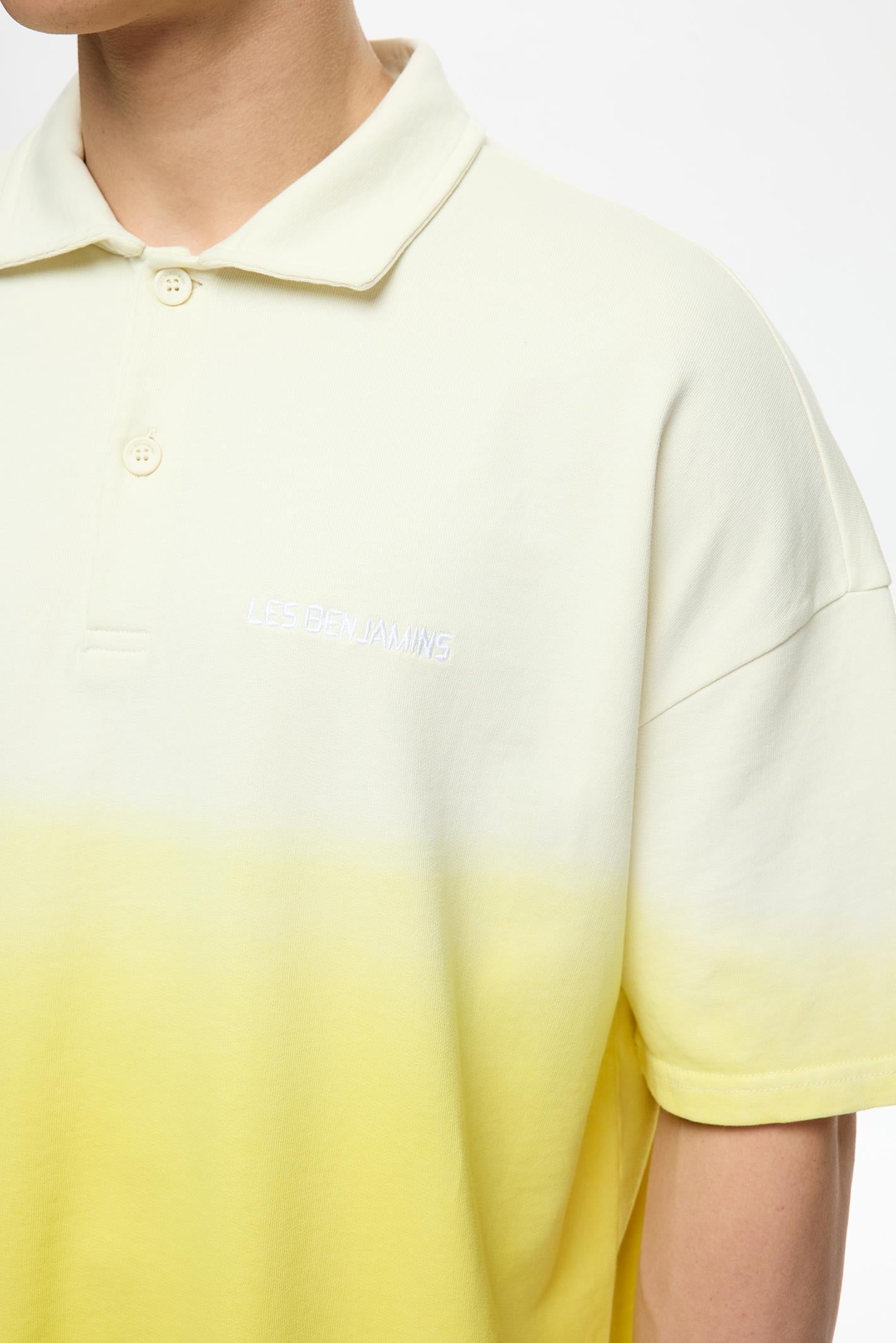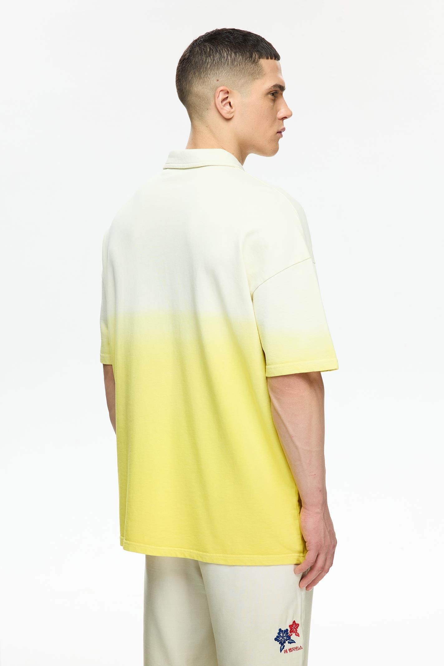 •Classic silhouette with pointed collar and buttons •Short sleeves •Polo style button fastening •Wrap embroidery branding on the chest •Gradient print