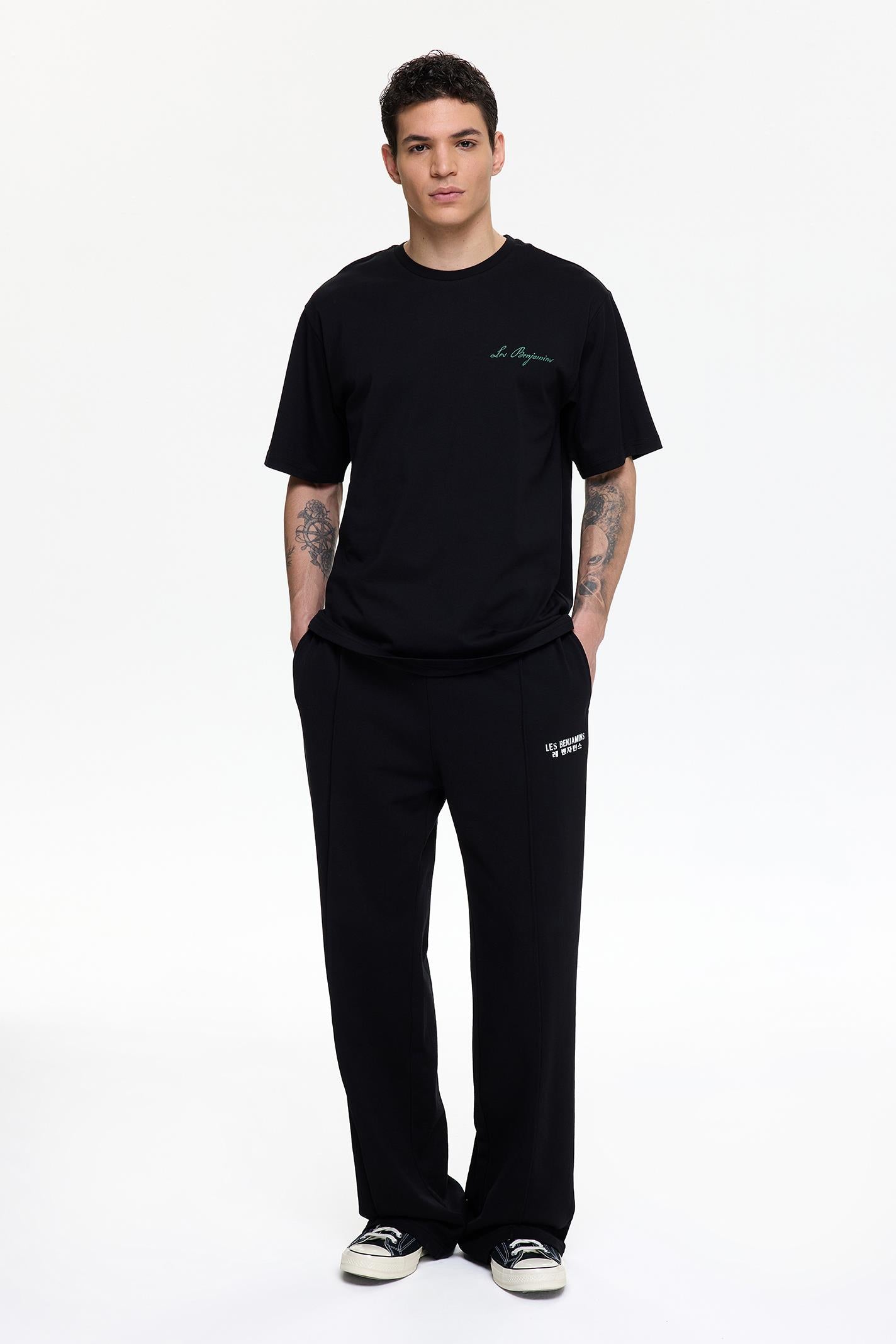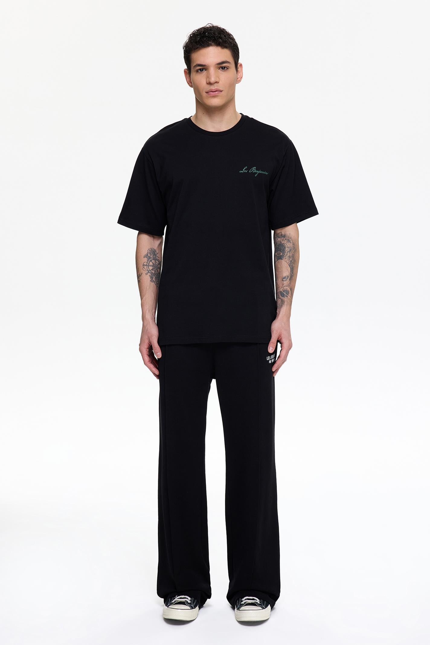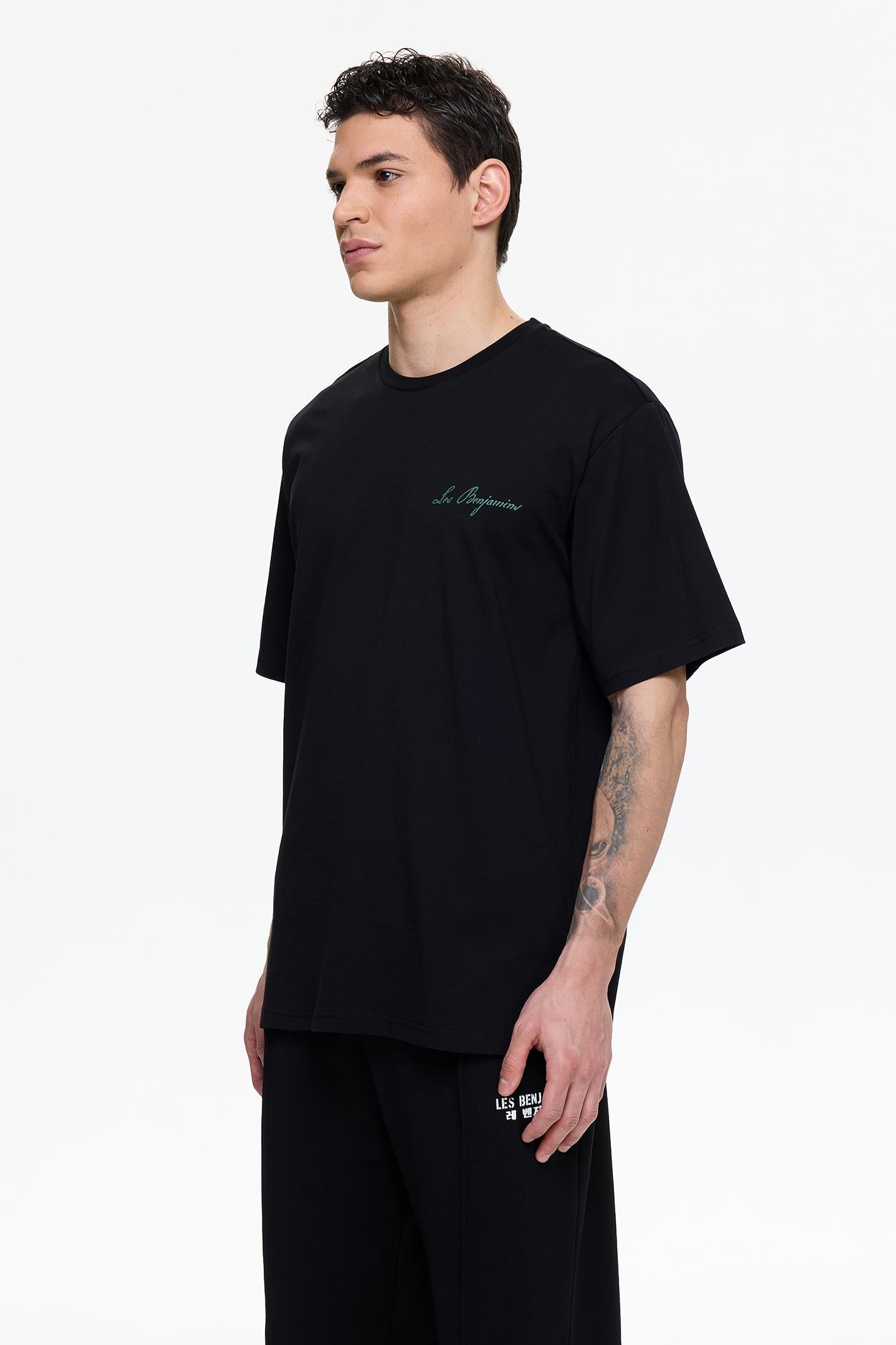 •Ribbed crewneck cover •Relaxed fit tee •Seasonal water-based branding at the front and back