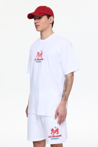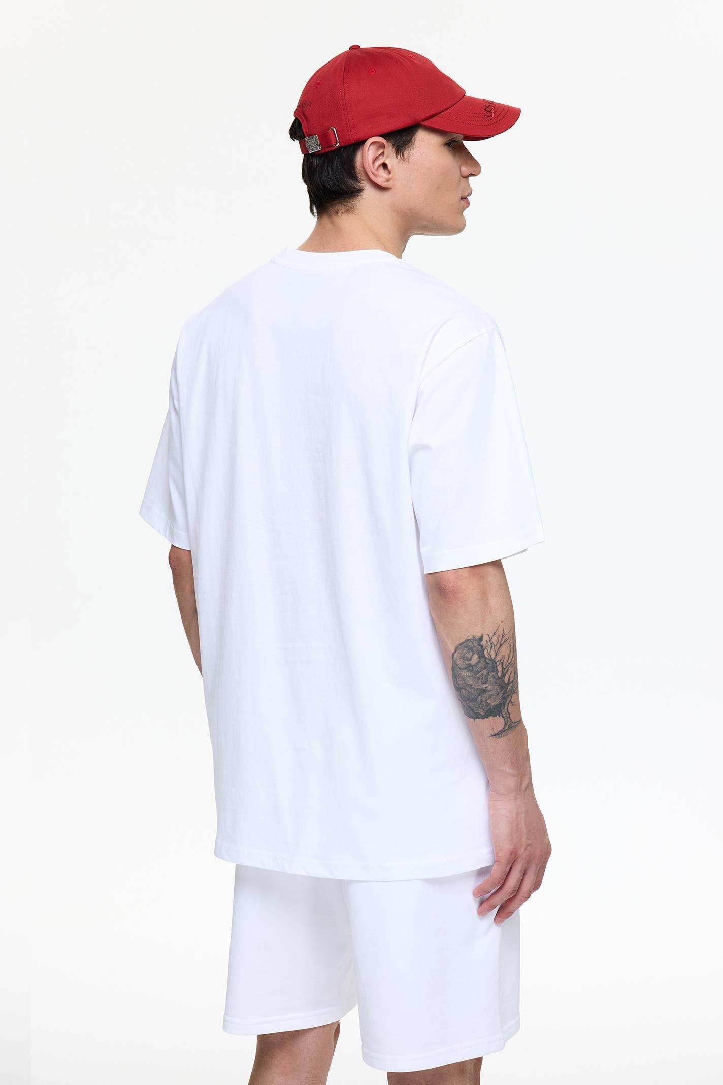 •Ribbed crewneck cover •Relaxed fit tee •Seasonal water-based print branding at the front