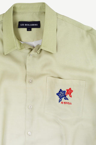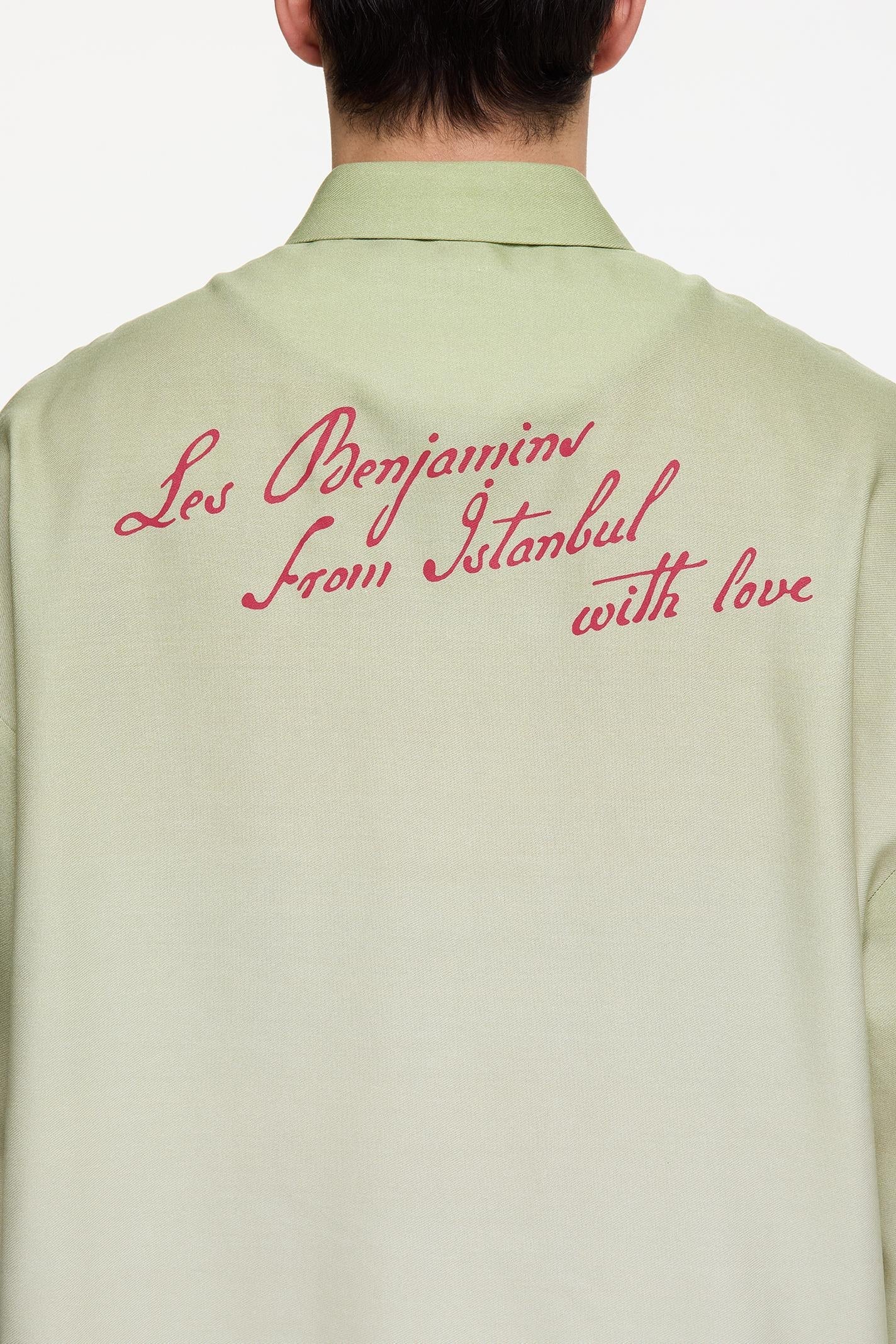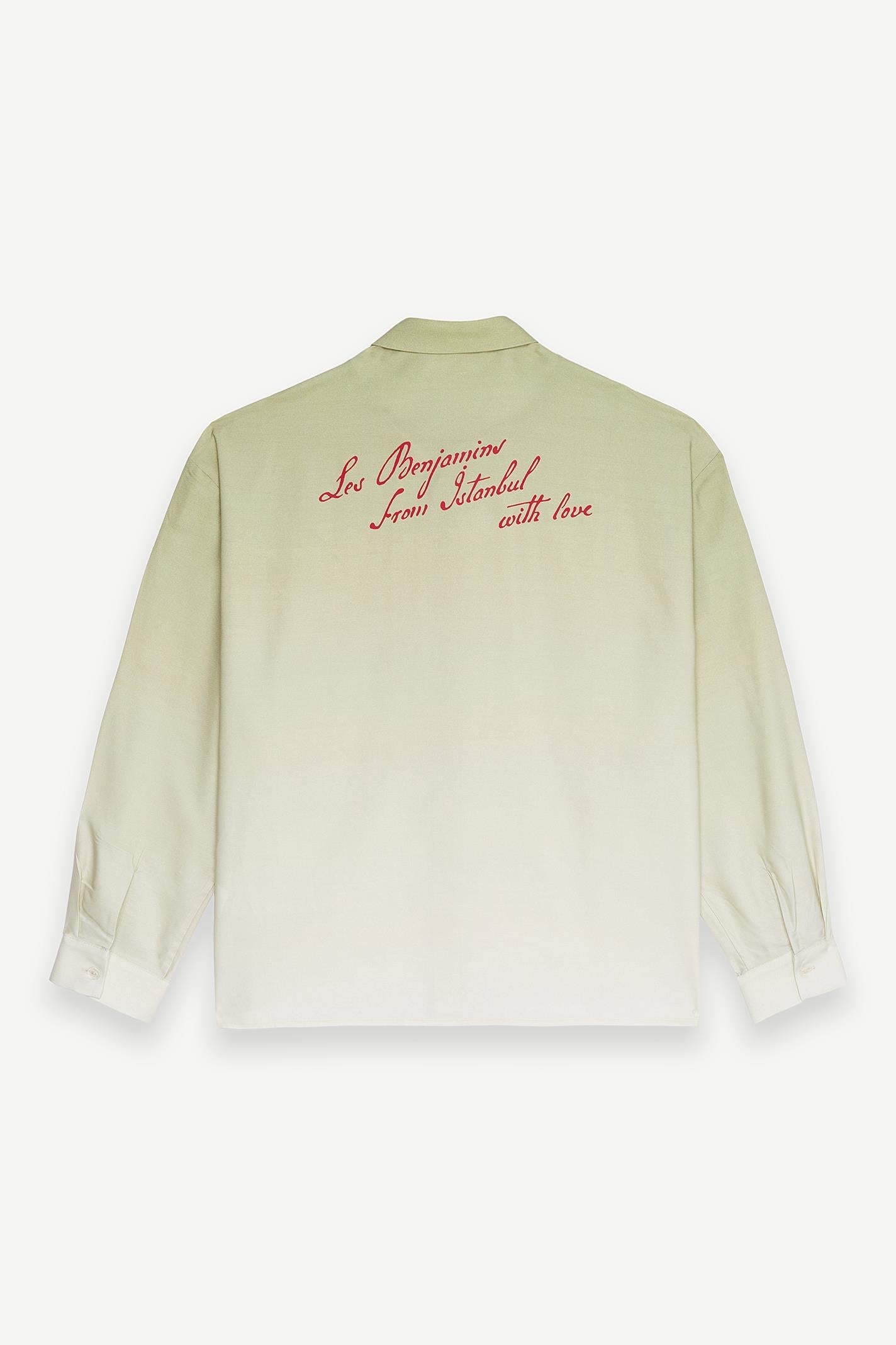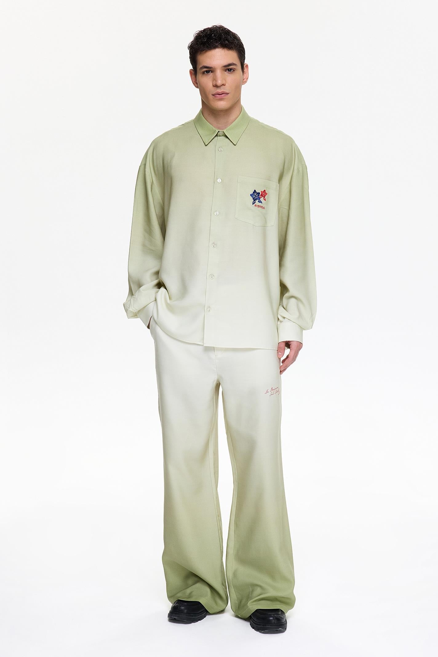 •Button closure •Gradient digital printing •Chest pocket •Seasonal wrap embroidery branding on chest •Water-based printing branding on the back