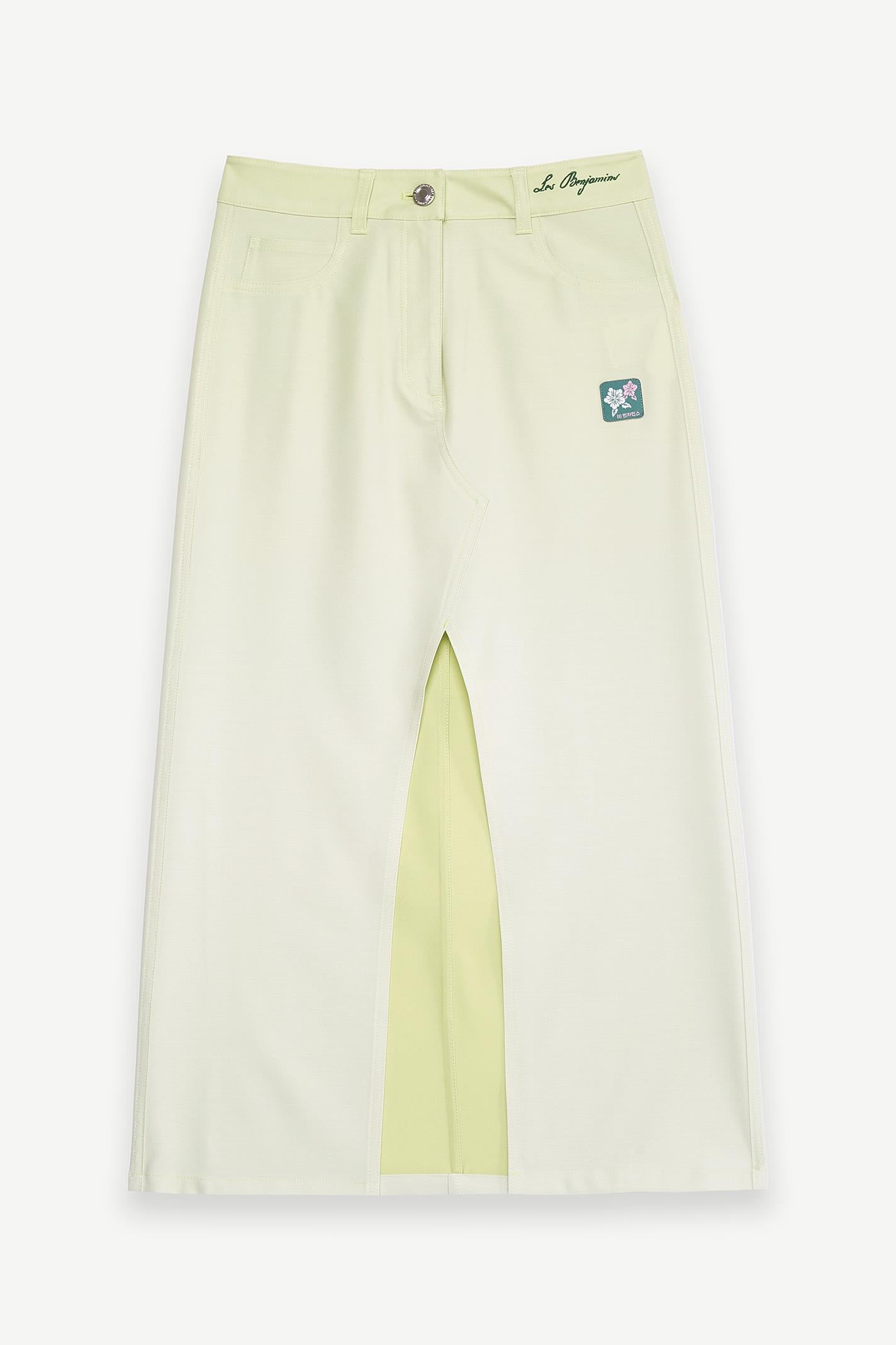 •Ornamental pocket •Zippered pat available •Slit in the middle of the front •Woven label •Waist-length wrap embroidery branding on the front •Digital print gradient allover •Trouser themed skirt