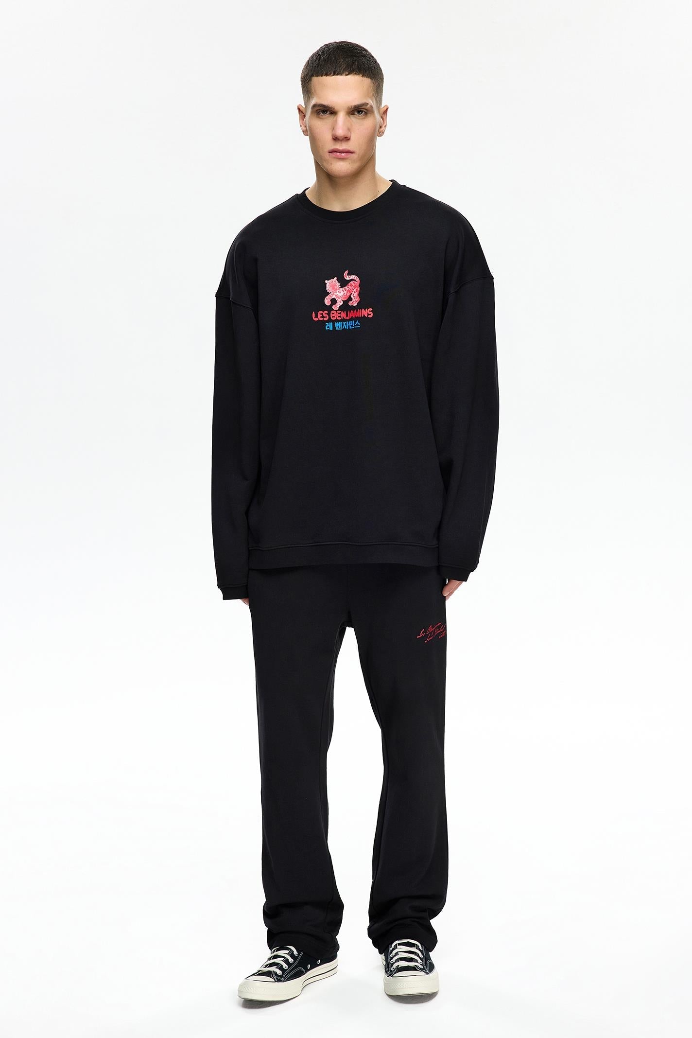 •Ribbed crewneck trim •Elasticated cuffs and waist •Relaxed fit •Seasonal water-based print branding at the front
